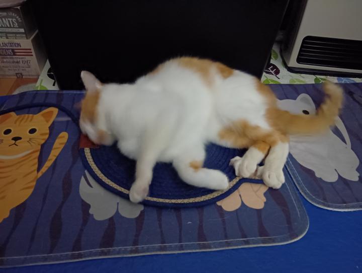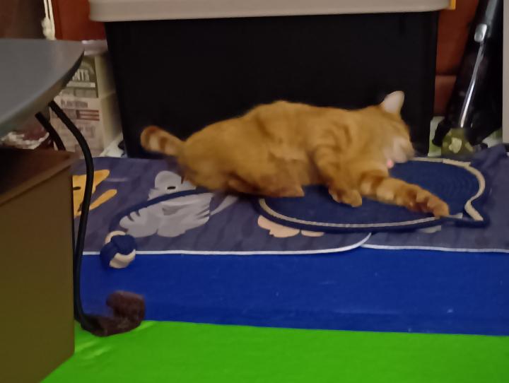 マタタビ振ってヒーター前に置いたら、かかった竹輪様