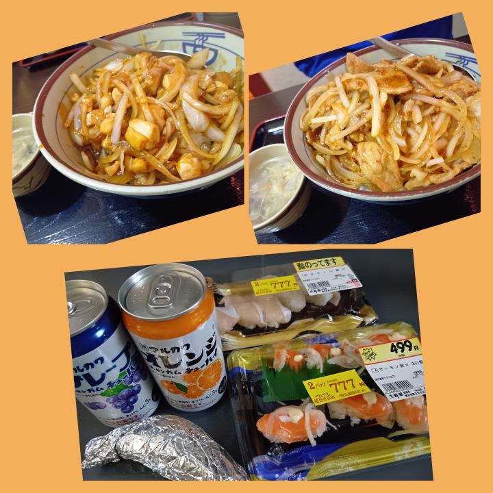 鶏丼普通と豚丼大盛 ほとんど相方が食べました