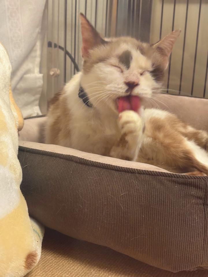 食欲はあって、台所でウェットフードを用意していると足元で待っている。