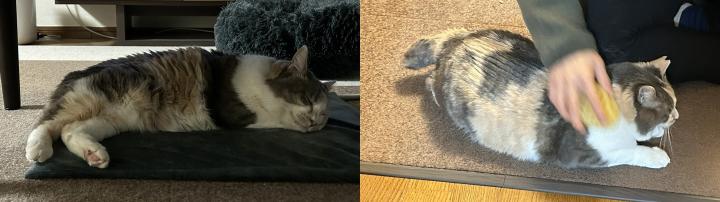 ホットカーペットで寝てたり、ブラッシングされたり。