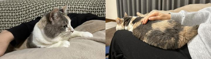 ふみふみしたり、撫でられたり、何かを気にしたり。