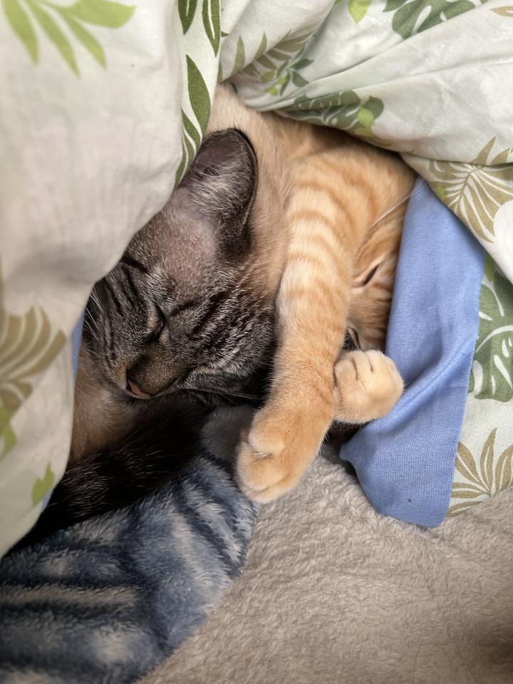 一区切りがついたので探してみたら、お布団の中で一緒に寝ていました💕