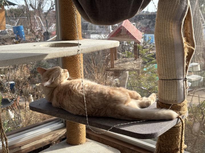 30センチくらいまで近寄って怒ってますが、なおがまったく動じないのでそのうち飽きてお昼寝。