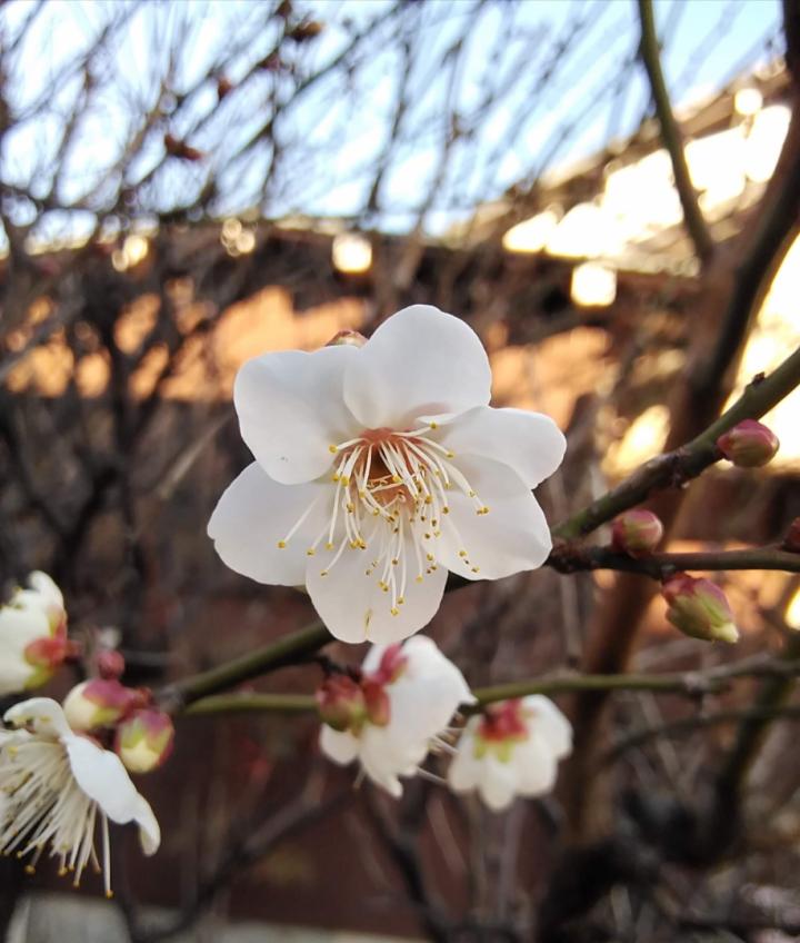 ウメです。近くで一箇所咲いているのを見つけました。幸先良いのか、