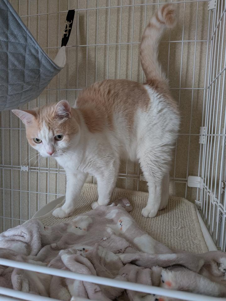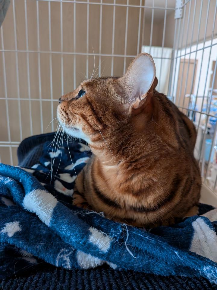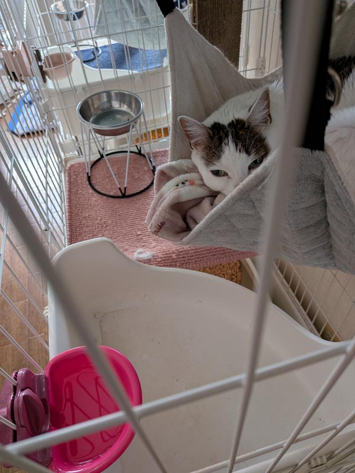 朝から、れおんと喧嘩し、ケージに避難の乃愛。
