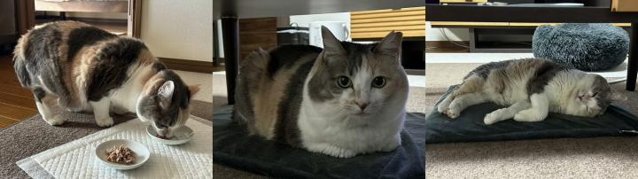 ひなたぼっこしたり、こっちを見てたり、先に就寝してたり。