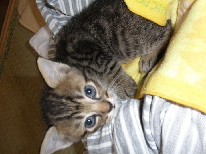 今日は、ネコ写の嵐で、デジカメのフラッシュに『ビクッ!!』とダンボール製のお部屋に飛び込んだ!