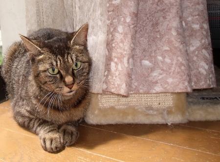 主人もいたので猫達全部をリビングから追い出しサッシを開けて焼きかつを入り口付近に置いて私はカーテンの後ろに身をひそめ息を呑んで待ちました。