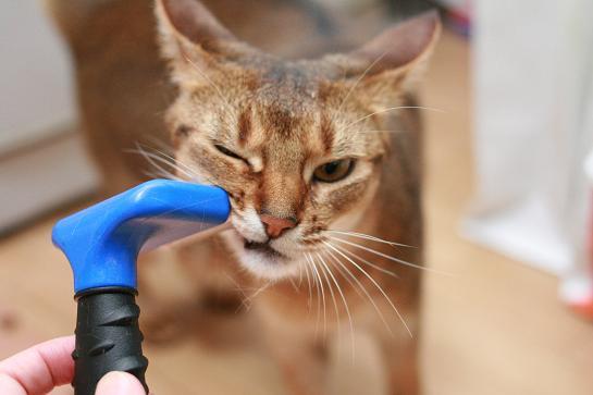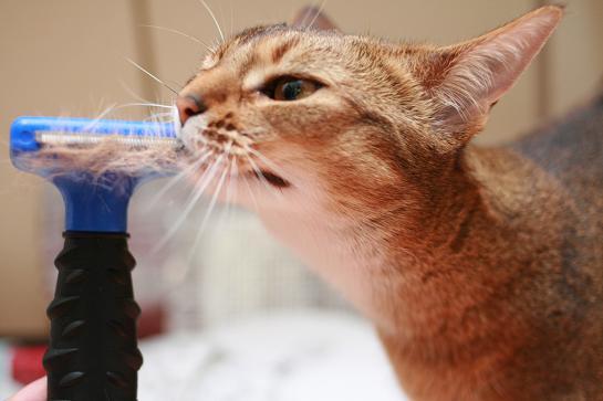 自分からブラシにゴリゴリと顔をこすり付けてます(^m^)