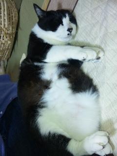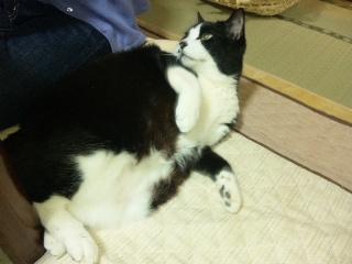 いつもこのような姿で母の隣に寝転び、マッサージを催促しています。