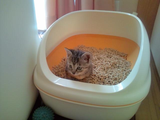 今まではちっちゃなダンボールでおトイレしてたんだけど、