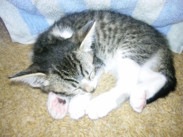 朝の一連の行事?(遊ぶ・ご飯・排泄)をして今また寝んねしてます。