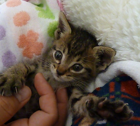 猫の先生に生後どれくらい?と聞いたら『35日!』と断言してくれました(笑)