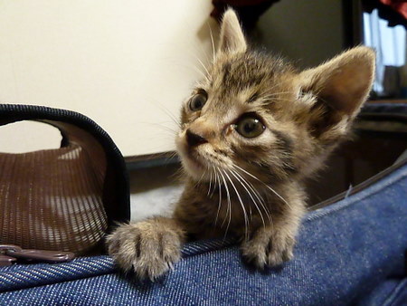 ミーミー言いながら部屋の中を走り回って人や先住猫の後をついて回っていました。