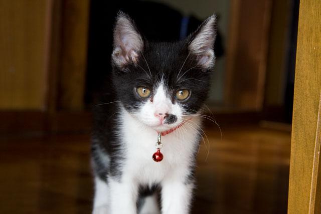 ちびちび4にゃんに、朝ごはんをあげて、ついでに写真を取って帰ってきたら、玄関でお出迎えしてくれました。