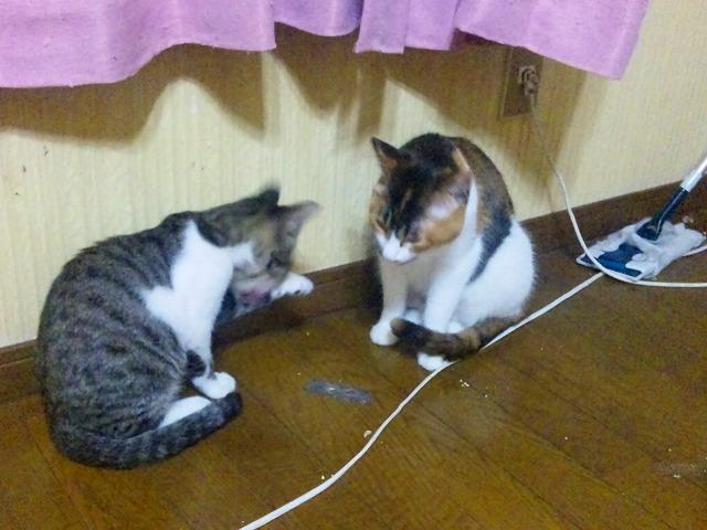 かんなが来た時も、びーちゃんとまっくすが来た時も、すんなり引き受けてくれて、しっぽで遊んであげている。