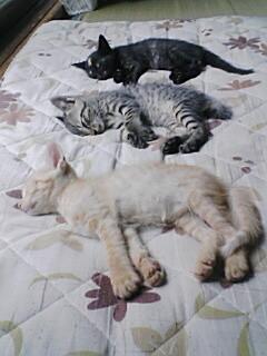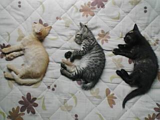 茶トラの男の子、キジトラの男の子、サビの女の子。