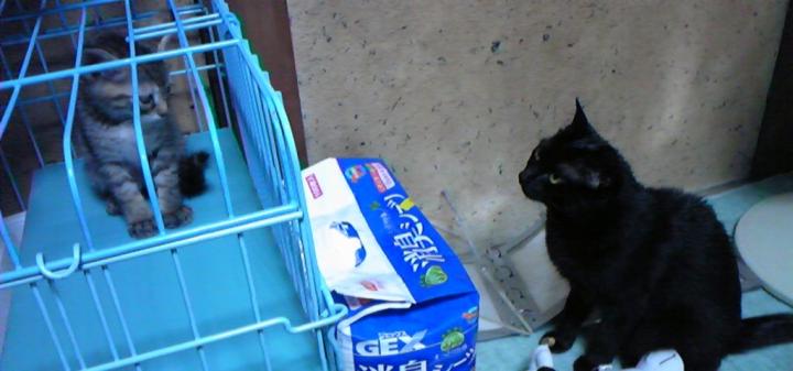 夜はりんをゲージに入れてるんだけど、まろ姉さん近くから動きません…