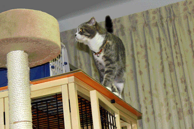 猫じゃらしを追って駆けあがったツナ