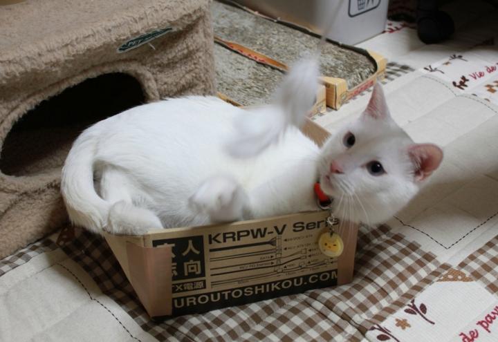 言わんばかりに飛びつき咥えて持去って遊んでいましたが、少し取上げて