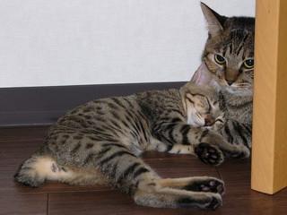 他の猫が大好き!なアビ柄ちゃん。甘えたまま寝てしまいました。