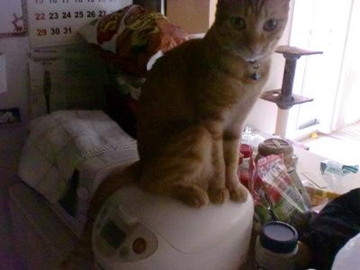 ファズが炊飯器の上に乗ったので叱る前に写真をパチリ♪