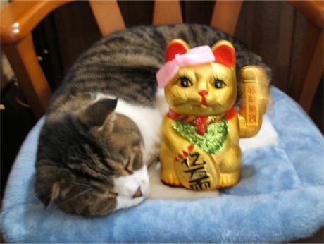福ちゃん、ま~るい爪とぎに「またたび」まいたら