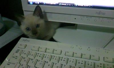 最近パソコンしていると、キーボードに上がって来るので、変なボタン押してて、文字の大きさや、アイコンのバーが消えたり、設定がめちゃくちゃされます(;´▽`A``。