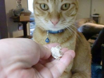 まずは鶏のササミを茹でたものを。これは前に飼っていた猫が