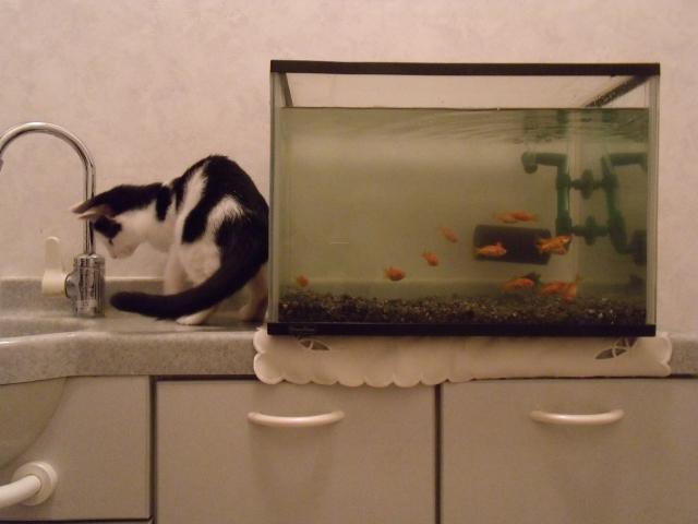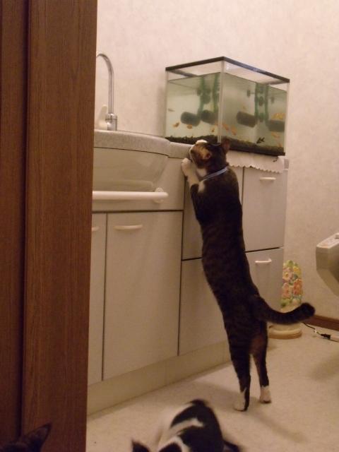 我が家には巨大金魚もいて、一緒にはできないしニャンの攻撃も心配だったからトイレ内に置くことに決めました☆