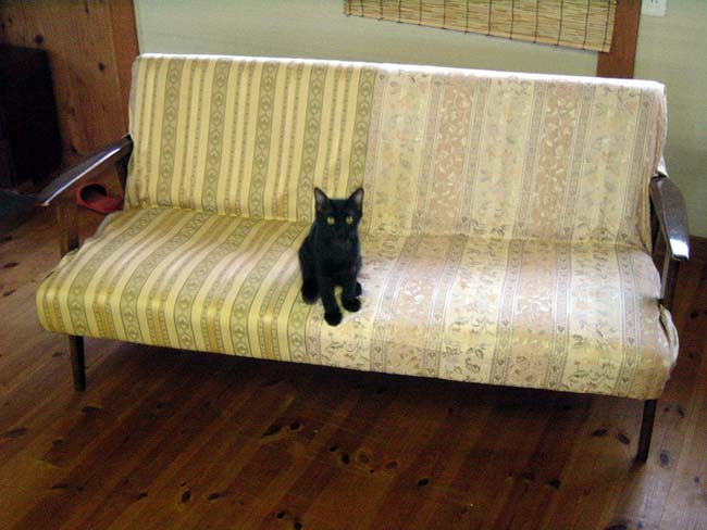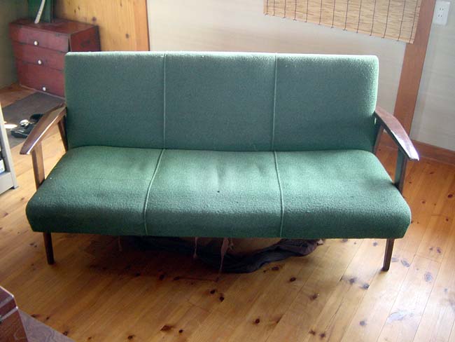 きわめて安易な方法で作成。 それでも1日3時間くらいずつやって、3日がかり。 なにせ長椅子ひとつと、1人掛け椅子ふたつだもの。
