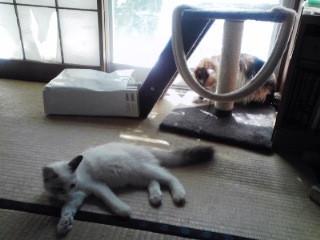 最近この二人の運動会が激しくて、しかも私を挟んで駆け回るので背中を登られたり、足を蹴られたり…