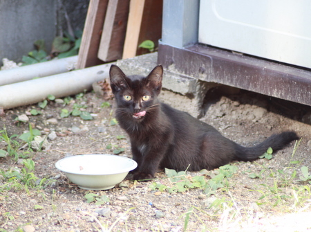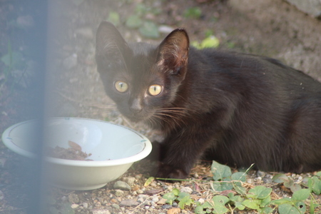 クロはだいぶ慣れて来たので、離れるとすぐに食べる