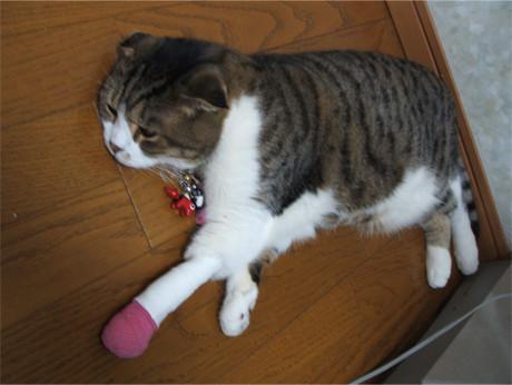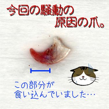 治療は爪が肉球にかなりくい込んでいて、診察台でもニャニャ