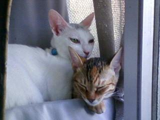最初はちみが入り込んだのですが、ちいも「こんないい所あるのね」ってな感じで2匹になり、