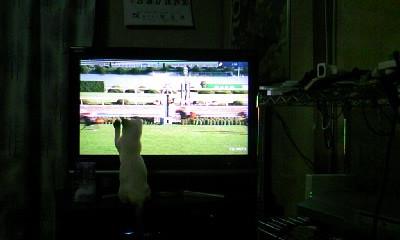 テレビに興味をもって、台の上に上がり見てることも、しばしば。画面の動くものに反応しまくりです。今のところ、爪は立ててないみたいですが、そのうち液晶やられるなぁ。