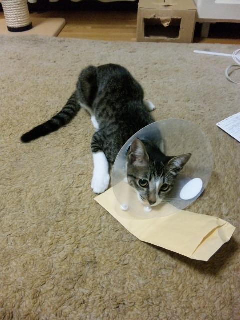 絆創膏食べちゃったので寝る前にカラー(病院の貸し出し)をつけて夜は寝ました。