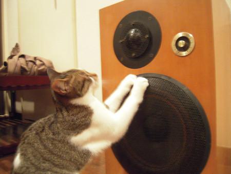今まで「重くて便利な箱」として、足場にしたり爪とぎにしたり椅子にしたりして使ってきましたが、これってもしかしてスピーカーじゃん!