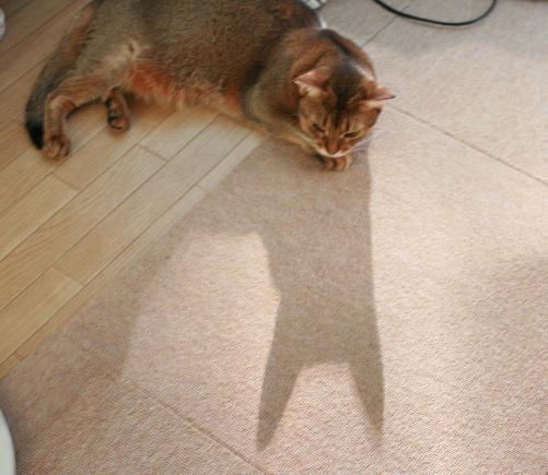 自分の影が不思議で目が離せないみ~ちょさん (^m^)