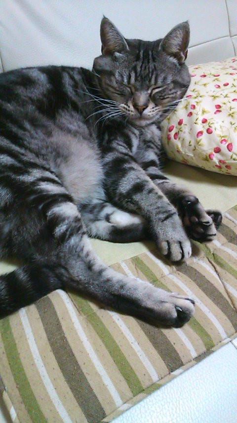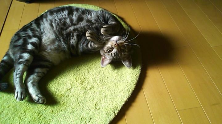 ソラマメの形した玄関マットですが、いつもこのマットと同じ形で寝ています。ぷぷっ♪