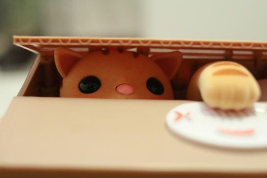 にゃ~♪の鳴き声と共に蓋が開いて、可愛い顔と手が見えて
