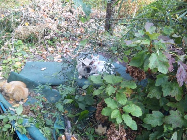 4兄弟の仔猫達は近くの草むらで遊んでいます。