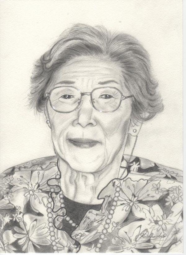 女性の服の華やかな柄を描くのに時間が掛かりました。