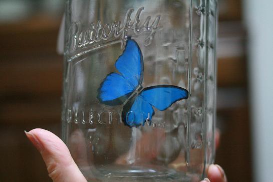 ガラス瓶の中をヒラヒラと舞ってみたり、側面に止って羽根を
