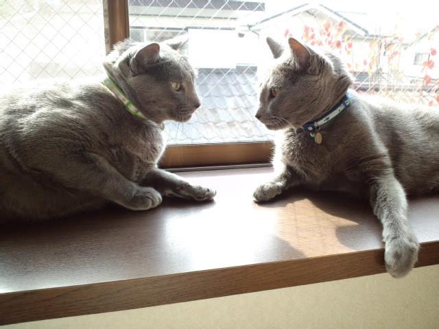 夏場とかはお互い「フー」と威嚇していたのに、冬場はよく二匹が近くにいることが多いです。