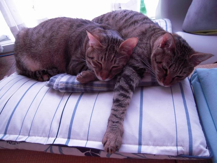 ほんとに仲良しでよかったよ、君たちが。(仲が悪かったら二匹の仲裁とお守りをしなければならなかったのだから。本当によかった・・しみじみ。)
