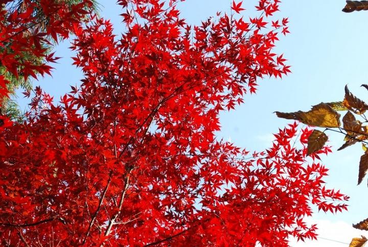 夕方から風が強くて、紅葉したもみじは皆散ってしまいました。