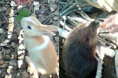 ご飯をもらうミニウサギと、ビーバー