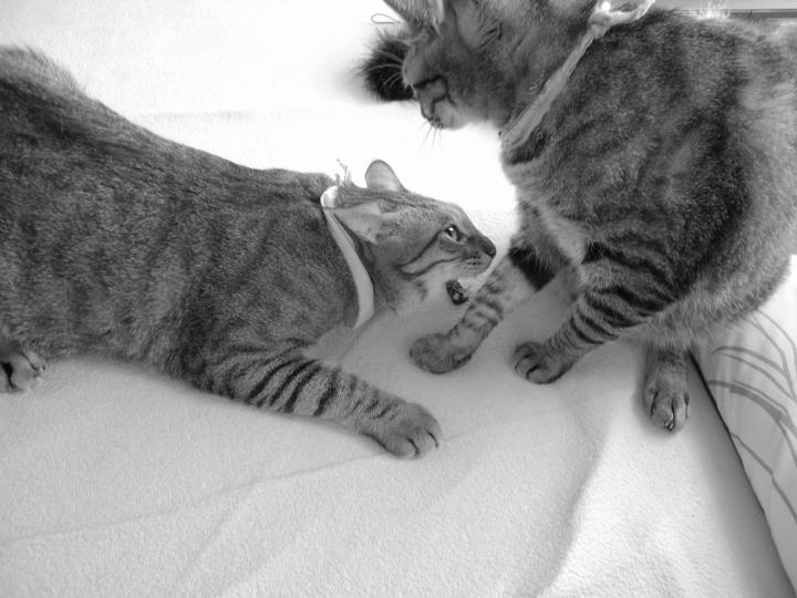ヒマつぶしに、ケンカをしている二匹。