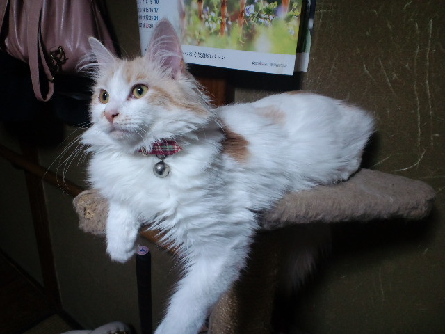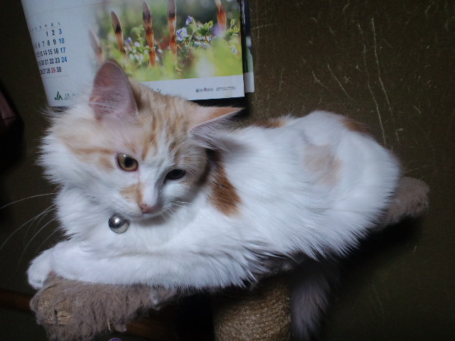 マドレーヌは白地に茶色のぶちのある、人なつっこい子です。。誰かにさらわれたのではないかと思います。。